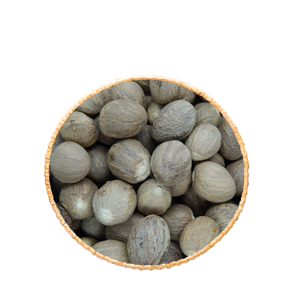 La noix de muscade est de forme ovoïde, elle constitue le cœur du fruit du muscadier .