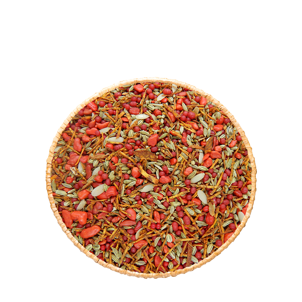 Mélange composé de graines de melon, fenouil, noix de bétel, anis, sucre.