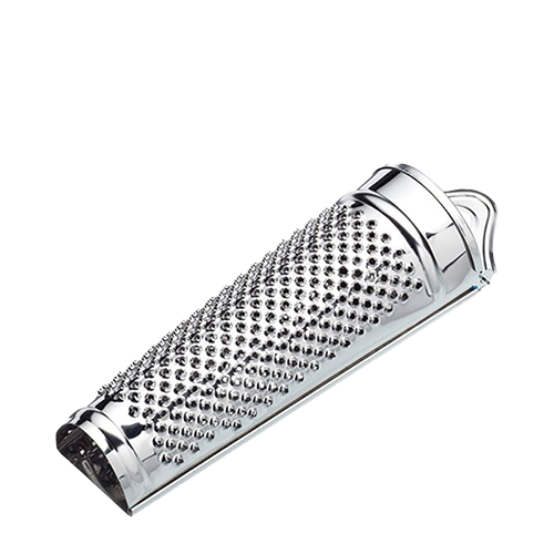 Son design en cône permet de faire tomber directement le râpé dans la poêle ou sur un dessert.