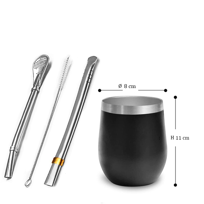 Calebasse moderne en acier inoxydable + 2 bombillas en acier inoxydable également + 1 couvercle permettant de maintenir la chaleur + 1 goupillon de nettoyage.