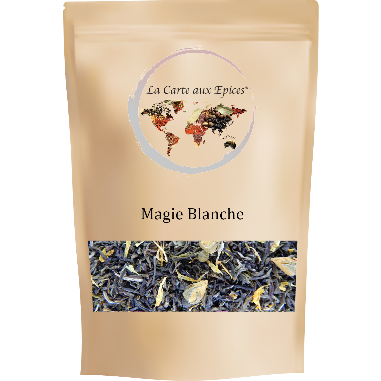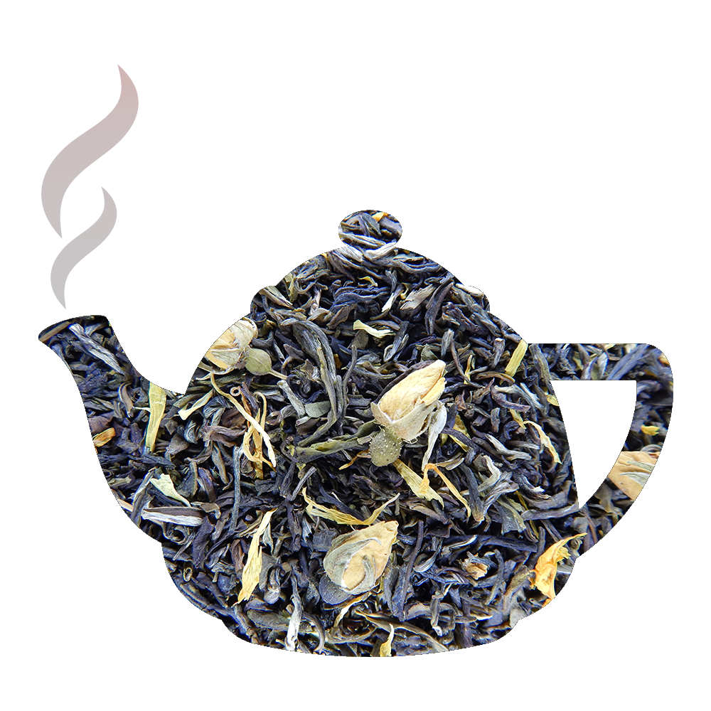 Thé blanc parsemé de boutons de rose et fleurs de souci, arômes naturels fruit de la passion, pêche et abricot.