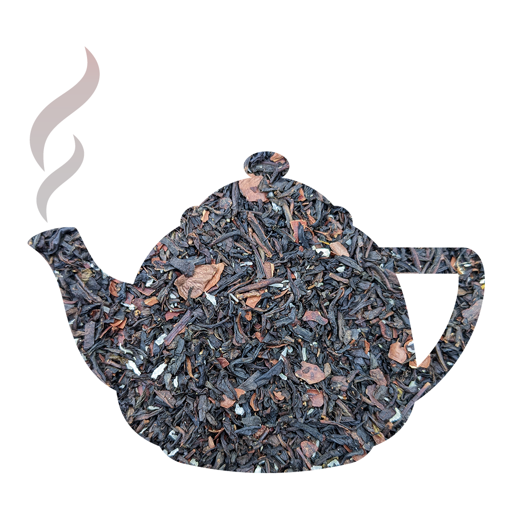 Thé noir de Chine parsemé de fèves de cacao et de noix de coco râpée. Arômes de café, vanille, caramel.